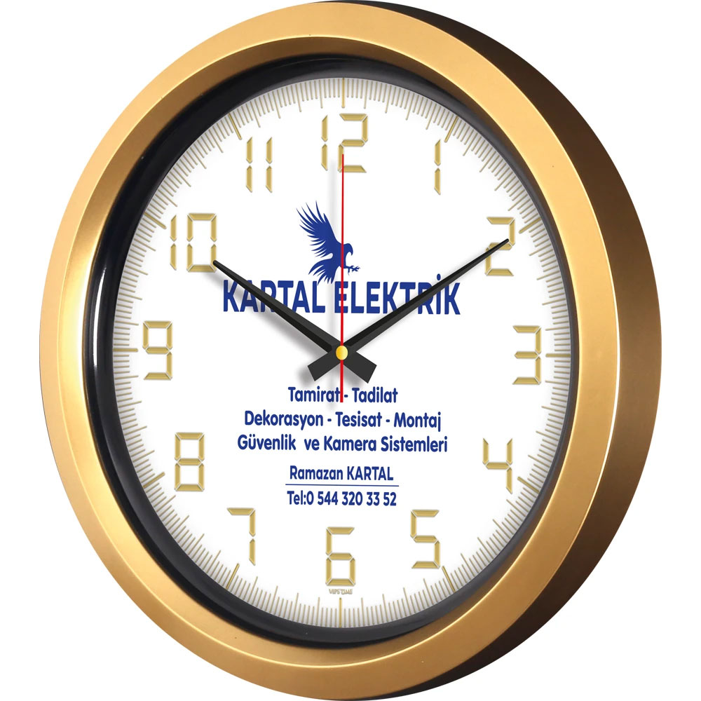 Açıklama: * Ebat: 40 cm * Çerçeve: Plastik * Kadran: Bristol * Saniye: Akar * Cam: Mineral * Baskı: Ofset, Dijital * Koli Adeti: 10 * Not: Altın Varak kadranlar diğer renklerede uygulanabilir.